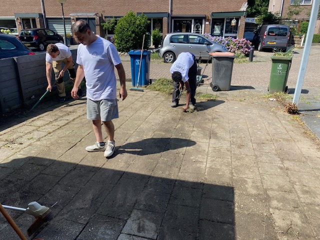 Voor dit project hebben we de tuin volledig opgefrist door de bestrating schoon te maken en het onkruid te verwijderen.